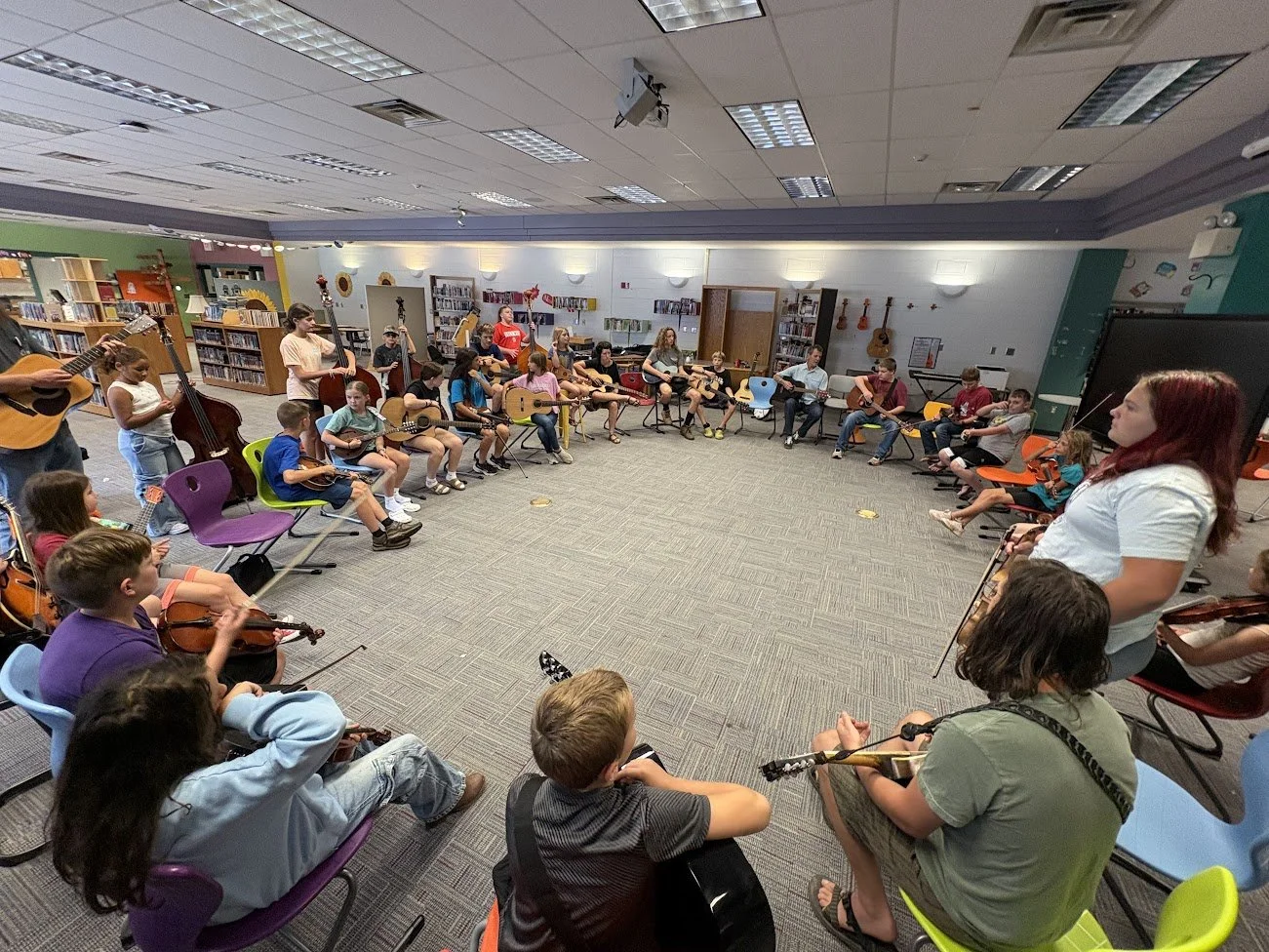 We teach traditional mountain music, which includes Old Time, Bluegrass, and Gospel.