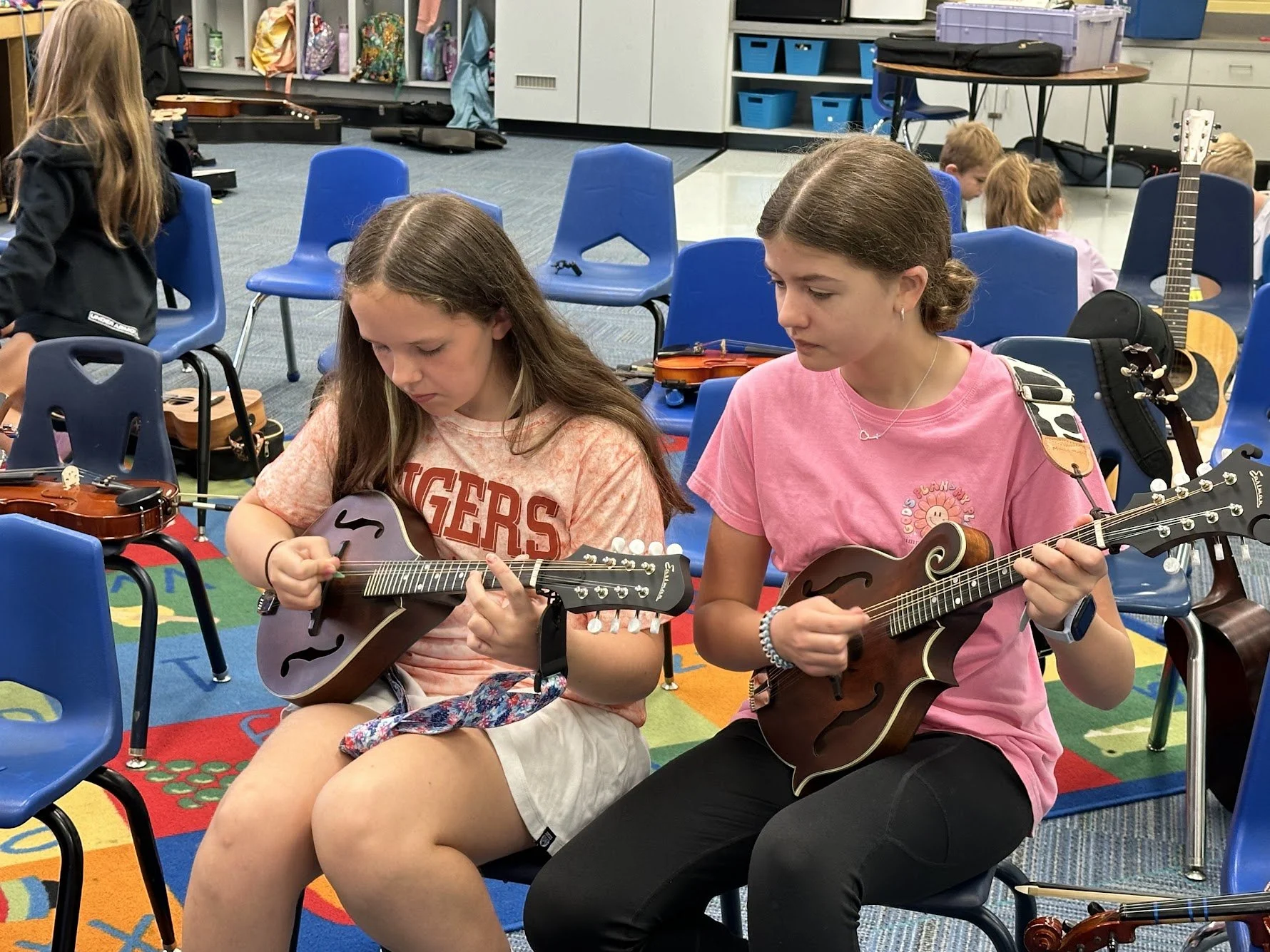 Students with have the opportunity to try many different mountain instruments, like upright bass, banjo, and autoharp.